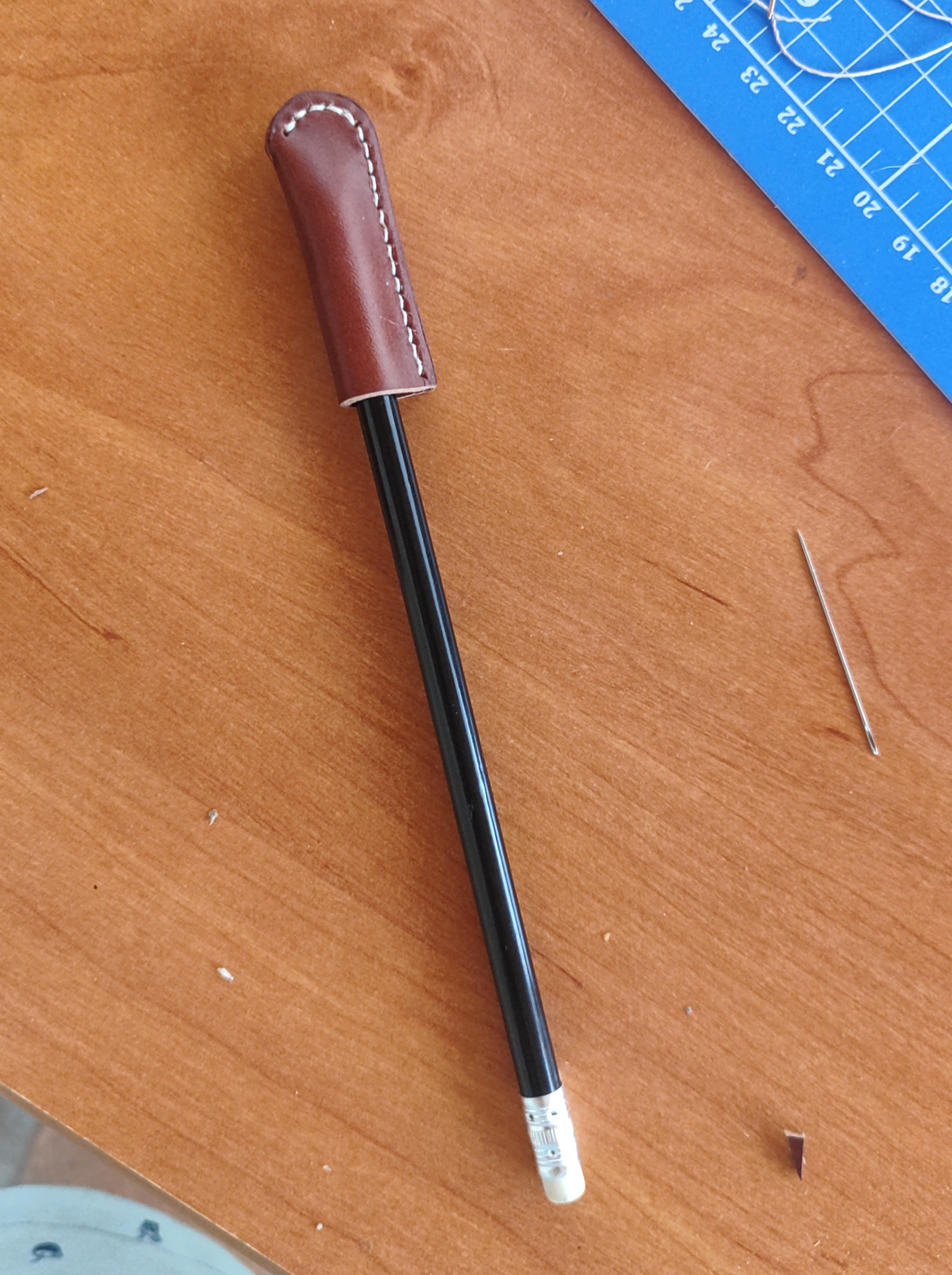 Crafted to protect the pencil tip I carry on my outdoor whittling kit. Also, it was great practice to familiarize myself with the material. Works perfectly!