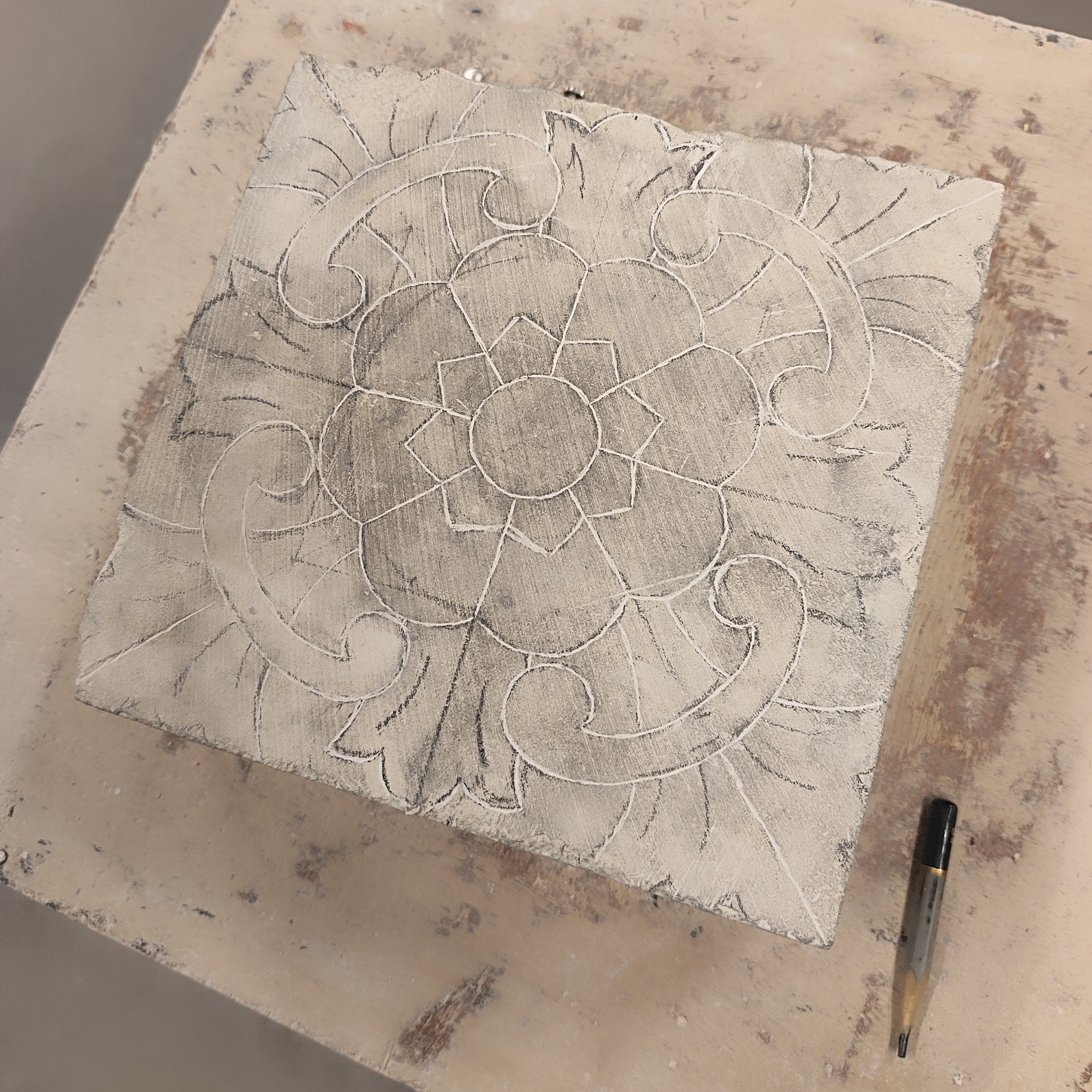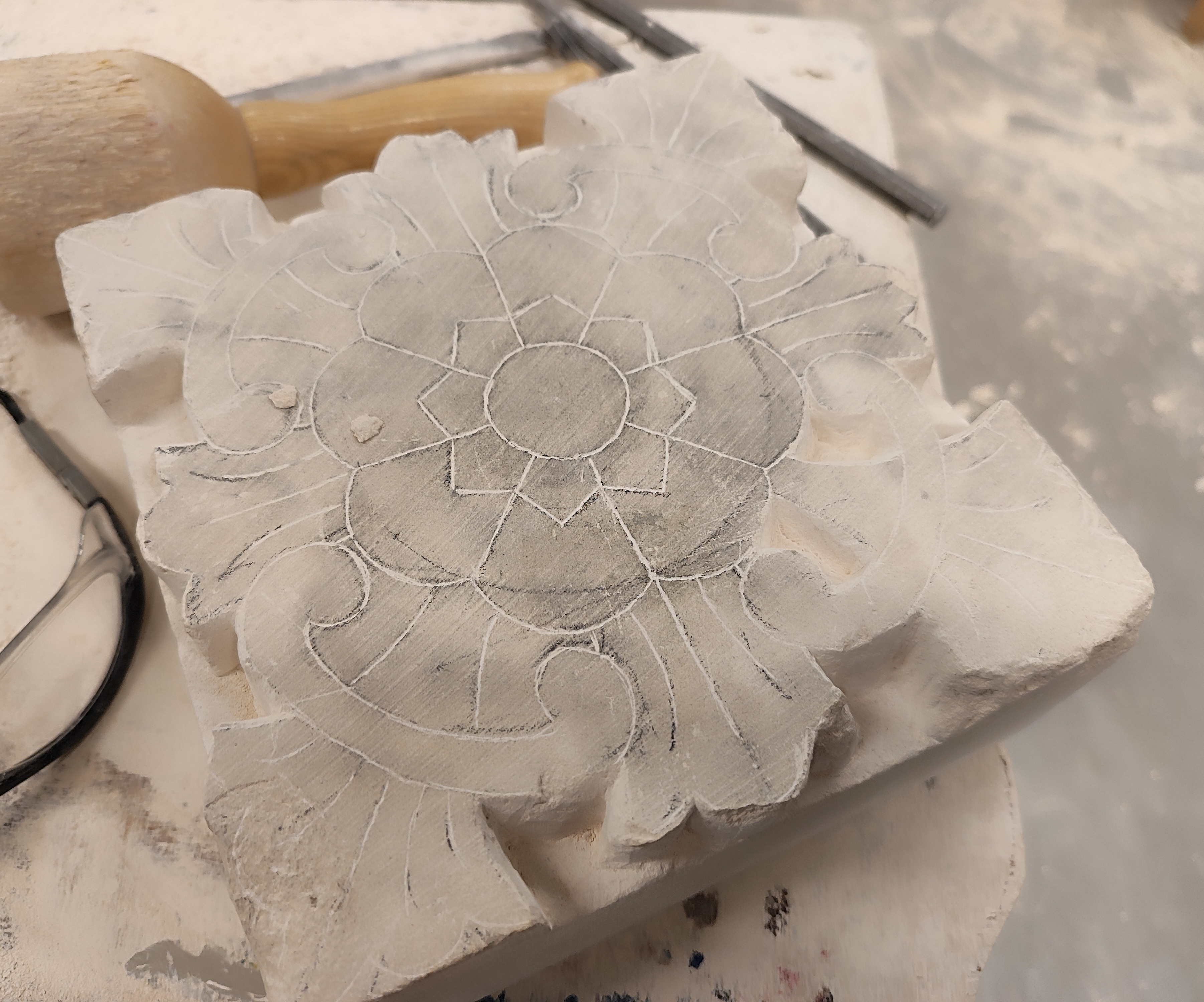 My introduction to stone carving! The design is inspired by this relief, which I quickly found by searching for Nature Relief on the spot.