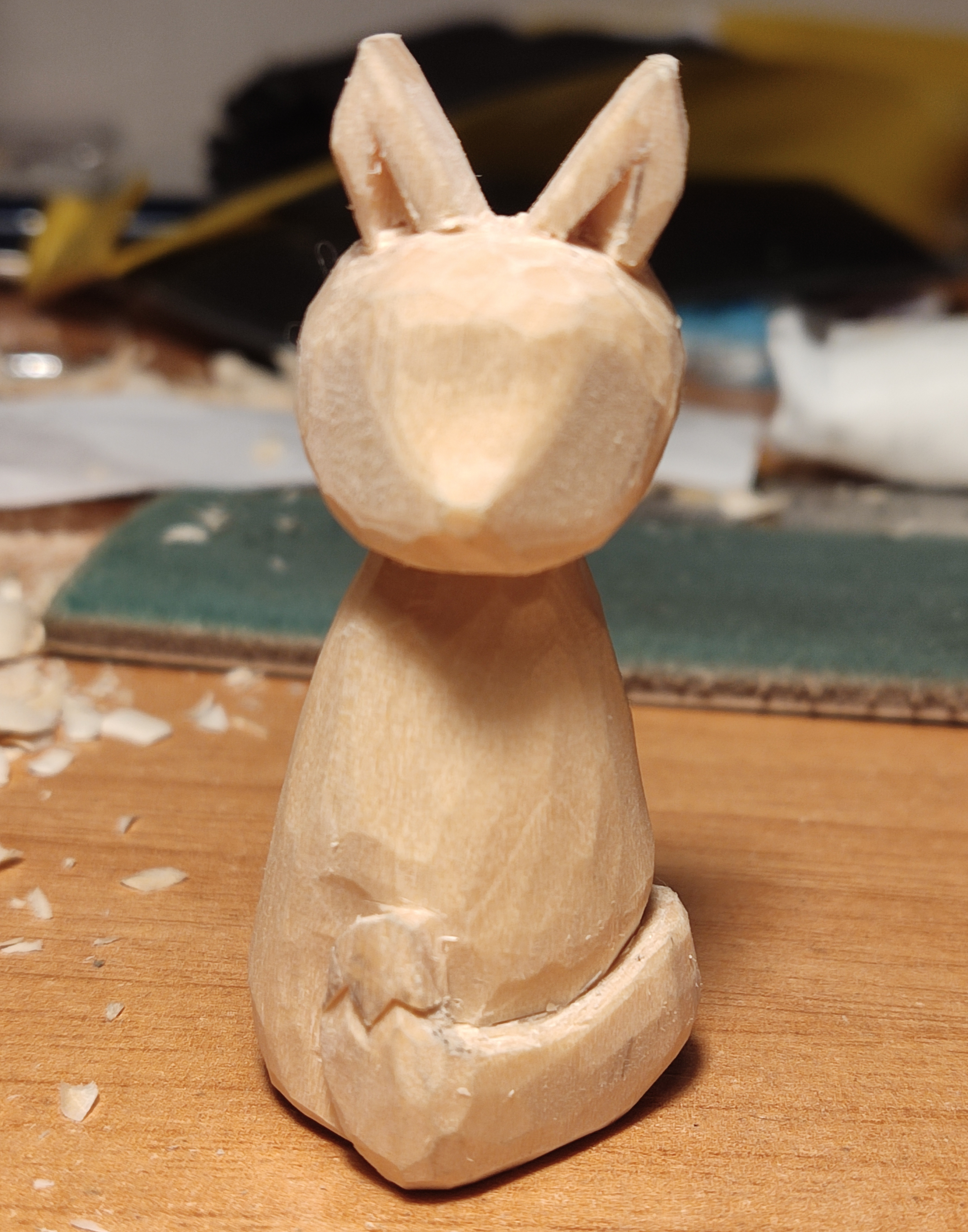 My first attempt at carving this fox designed by Werewolf Whittler. One of my favourite whittles!